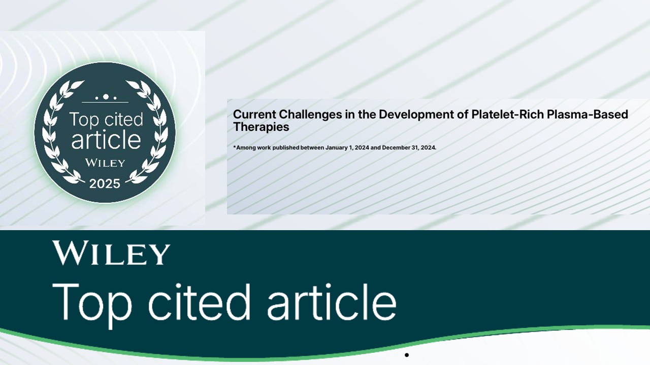 MiKS Community se hace eco del reconocimiento otorgado al artículo científico “Current Challenges in the Development of Platelet-Rich Plasma-Based Therapies”, que ha sido incluido entre los 10 trabajos más citados publicados en 2024 en la revista BioMed Research International, según datos de Clarivate Analytics.